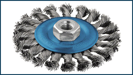 El cepillo de alambre Heavy for Metal ofrece un acabado extrarrugoso. El cepillo está fabricado con alambre trenzado para aplicaciones de limpieza intensas en superficies pequeñas. Es ideal para limpiar uniones soldadas y adecuado para la limpieza de superficies, bordes o ranuras de acero a altas velocidades circunferenciales. El cepillo de alambre es ideal para el uso en metal y también es adecuado para quitar óxido incrustado, decapar pintura, desescoriar, desbarbar y descascarillar. Está destinado al uso con amoladoras con rosca M14.