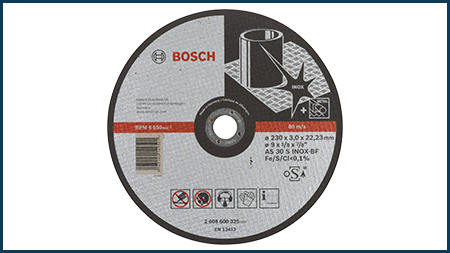 El disco de corte Expert for Inox ofrece un potente rendimiento de corte en acero inoxidable con la máxima seguridad. El disco está hecho de óxido de aluminio premium superduro con rellenos y aditivos funcionales para reducir el calor generado al cortar. Esto produce una superficie de gran calidad y garantiza un prolongado rendimiento del disco. Además, el disco no contiene hierro, cloro ni azufre Se garantiza la máxima seguridad del trabajo gracias a la sofisticada red de fibra de vidrio. Use este disco para cortar acero inoxidable. Es compatible con amoladoras. Los discos de corte Bosch cumplen con los máximos requisitos de seguridad, por ejemplo, las normas EN 12413, FEPA y oSa.