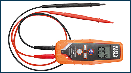 El multímetro MM300 mide voltaje CA/CD, corriente CD y resistencia, y cuenta con una clasificación de seguridad CAT III 600 V, clase 2 y doble aislamiento. El NCVT-1 cuenta con un LED color verde brillante que indica que el probador está en funcionamiento y cambia a color rojo y emite tonos de advertencia cuando detecta voltaje.