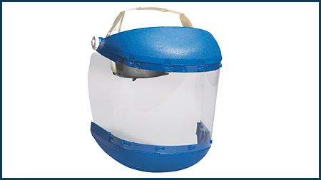 Protector facial con protección para barbilla. Enteramente fabricado en plástico. Casco de frente completo y alto impacto, y protección extra para la barbilla. Casco de matraca totalmente flotante con completo ajuste de tensión y banda absorbente de transpiración para brindar más comodidad. Diseño que no se deforma y resiste la distorsión dimensional por acción del calor y la humedad. Amplio espacio libre de la ventana interna. La gran ventana se extiende hasta detrás de las orejas brindando una amplia protección angular. La ventana está fabricada en acetato claro y resistente, y está montada con pernos de hendidura, lo que permite su fácil reemplazo. Cumple con las normas ANSI Z87.1-2003 y CSA Z94.